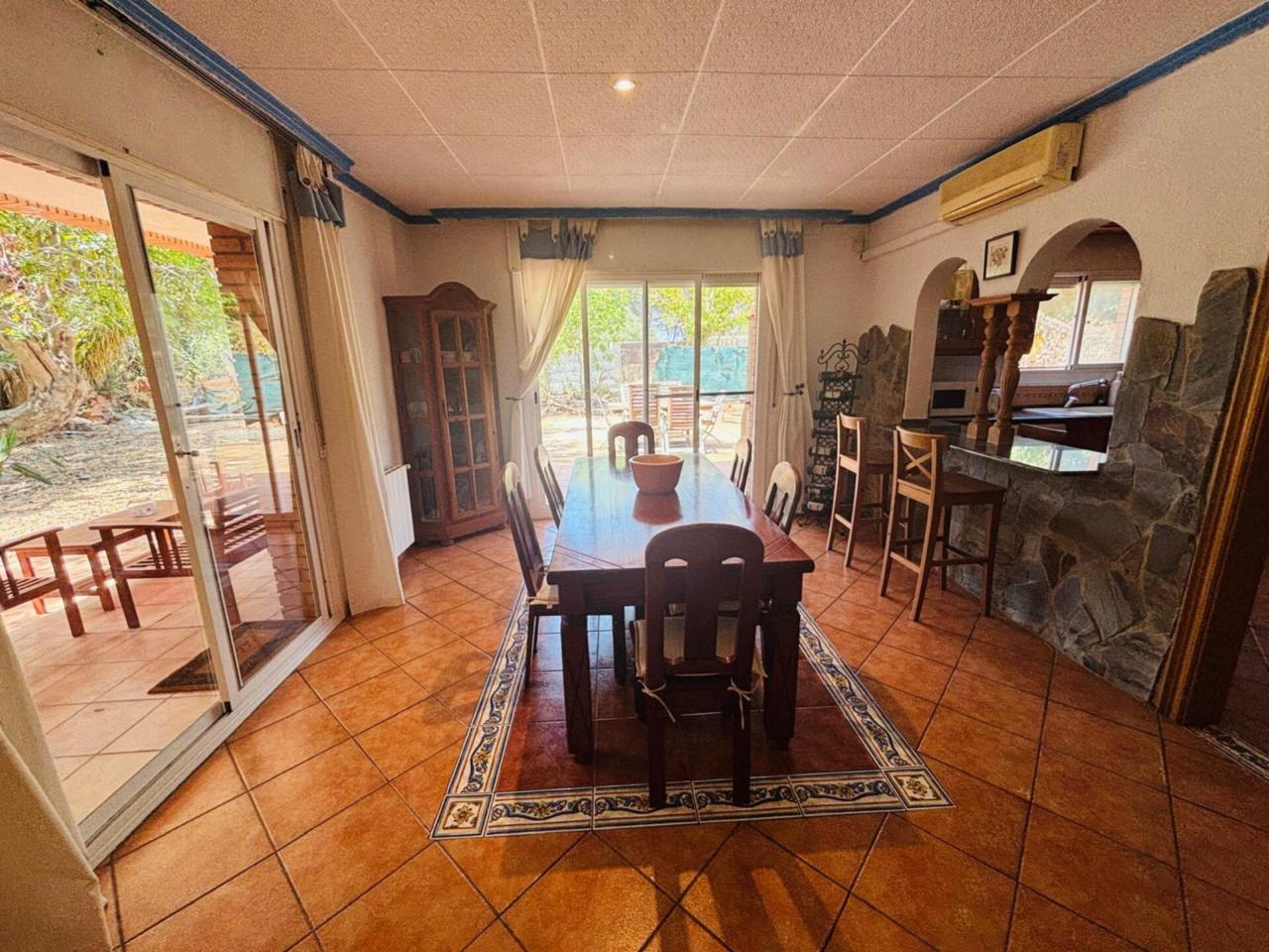 La casa que se encuentra edificada en un amplio y llano terreno de 950 m², ofrece 4 habitaciones dobles, una de ellas situada en la planta baja de la vivienda, para facilitar el acceso, 2 baños amplios, una cocina con pasaplatos aiberta al comedor, un gran salón comedor con salida a terraza y al jardín, garaje para 2 vehículos, con techos altos y posibilidad de altillo, terrazas, porche y gran jardín propio, que rodea toda la vivienda y dónde construir una gran piscina. Tiene registrada una superficie de vivienda de 235 m² y útil 150 m2.