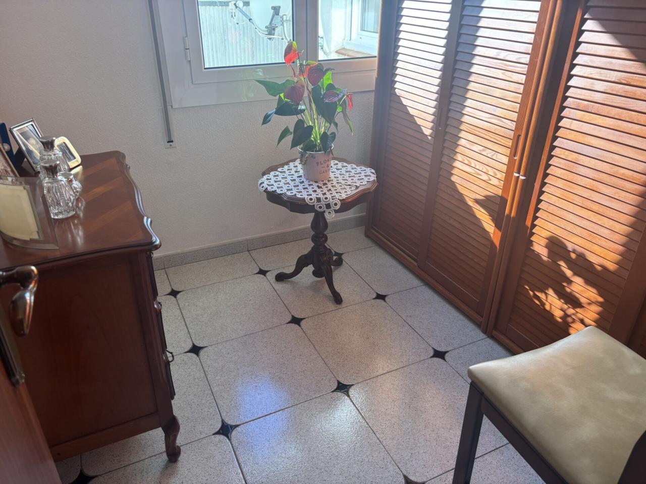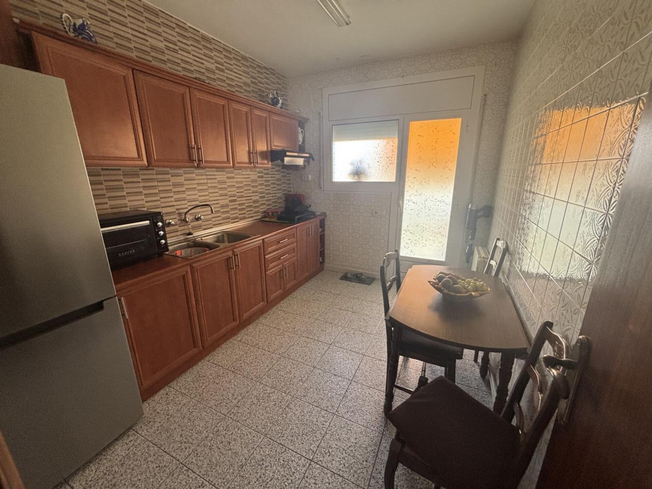 Este amplio piso de 92 m² , cuenta 4 habitaciones, 3 de ellas dobles, 1 baño reformado con ducha y 1 aseo de origen bien conservado, una luminosa y exterior cocina, un gran salón comedor y un balcón con acceso des del comedor y des de la cocina.